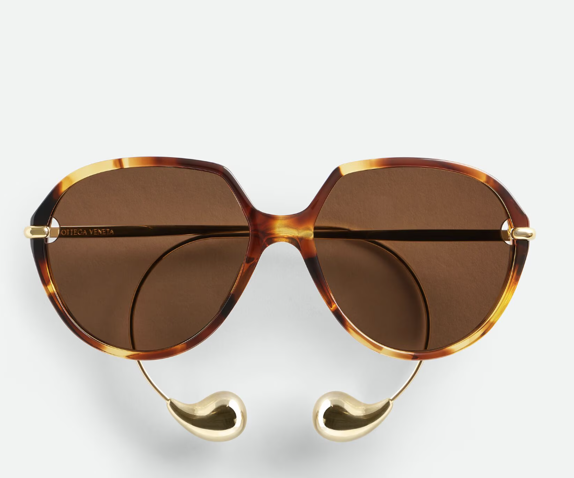 Lunettes de soleil carrées en acétate recyclé. Branches avec extrémités reprenant la forme de goutte d'eau signature.