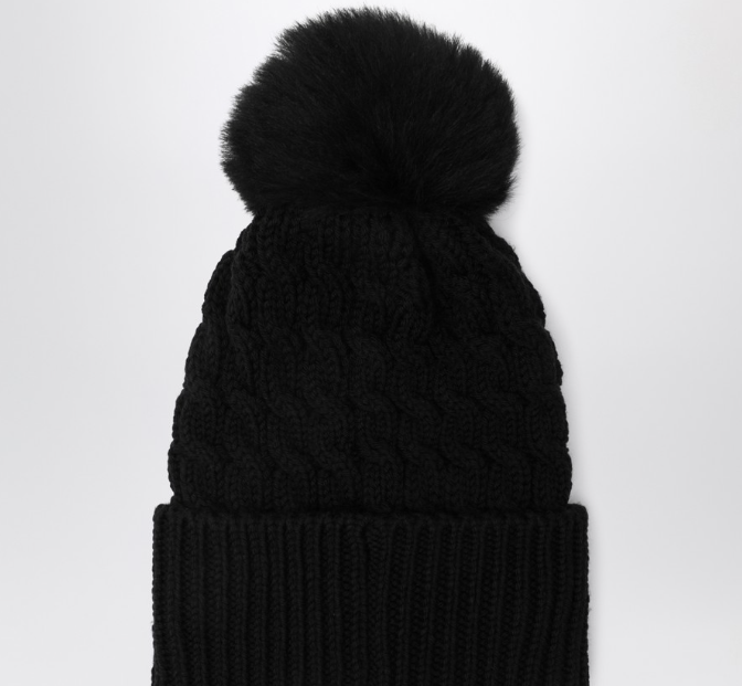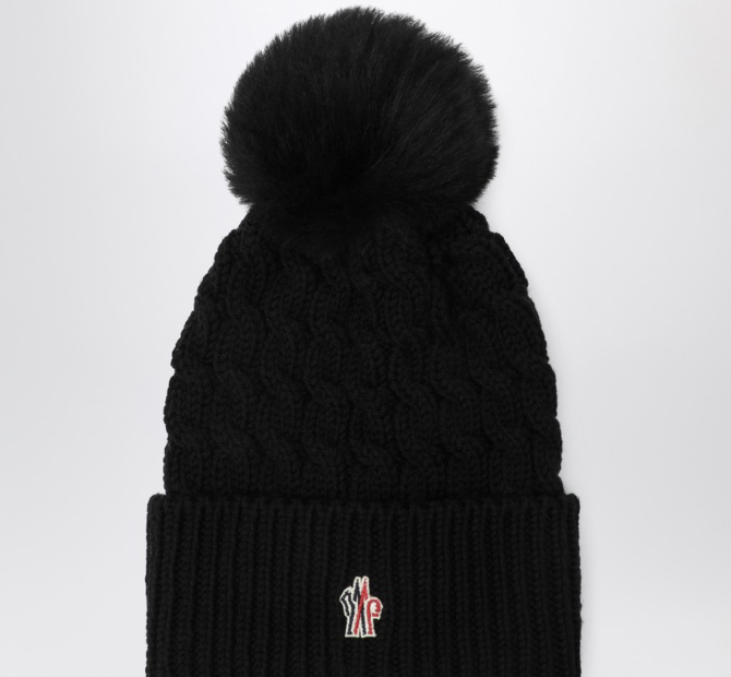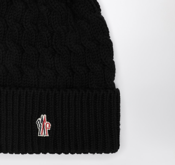 Bonnet Moncler Grenoble en laine avec motif en torsades, caractérisée par des pompons et un revers avec broderie de logo.