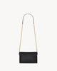 Pochette à chaine en cuir d'agneau souple, ornée du cassandre.