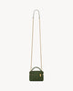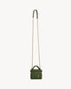 Entièrement doublé en cuir, le sac est doté d’une bandoulière chaîne amovible permettant de le porter de plusieurs façons.