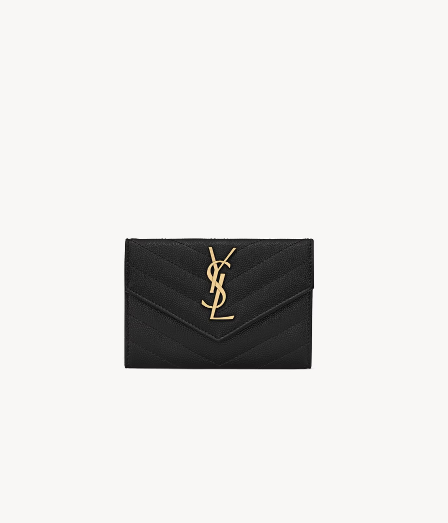 PORTEFEUILLE ENVELOPPE ORNÉ DU CASSANDRE ET DE SURPIQÛRES MATELASSÉES.